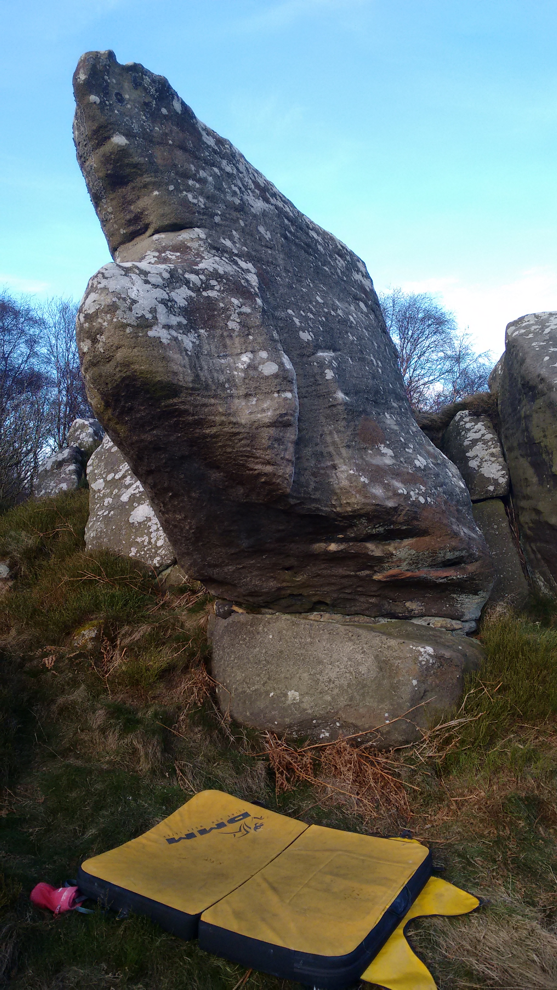 boulders behind Bat Buttress developed a while back by Mike Gray – recently rediscovered and a few easier problems added. About a dozen problems – a few of which are very good. Easily combined with a visit to Little Brimham or Bat Buttress – or you could tackle Highwayman.