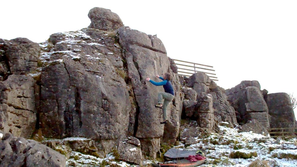 A classic limestone bouldering area – great rock and mostly flat field landings. Really fine features (and lots more to develop). The setting is stunning; with the Three Peaks all around.